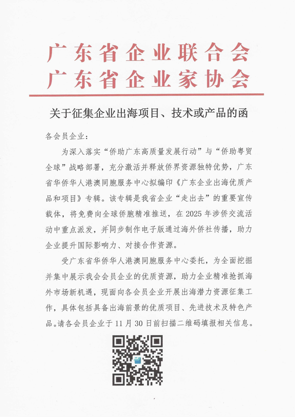 关于征集企业出海项目、技术或产品的函