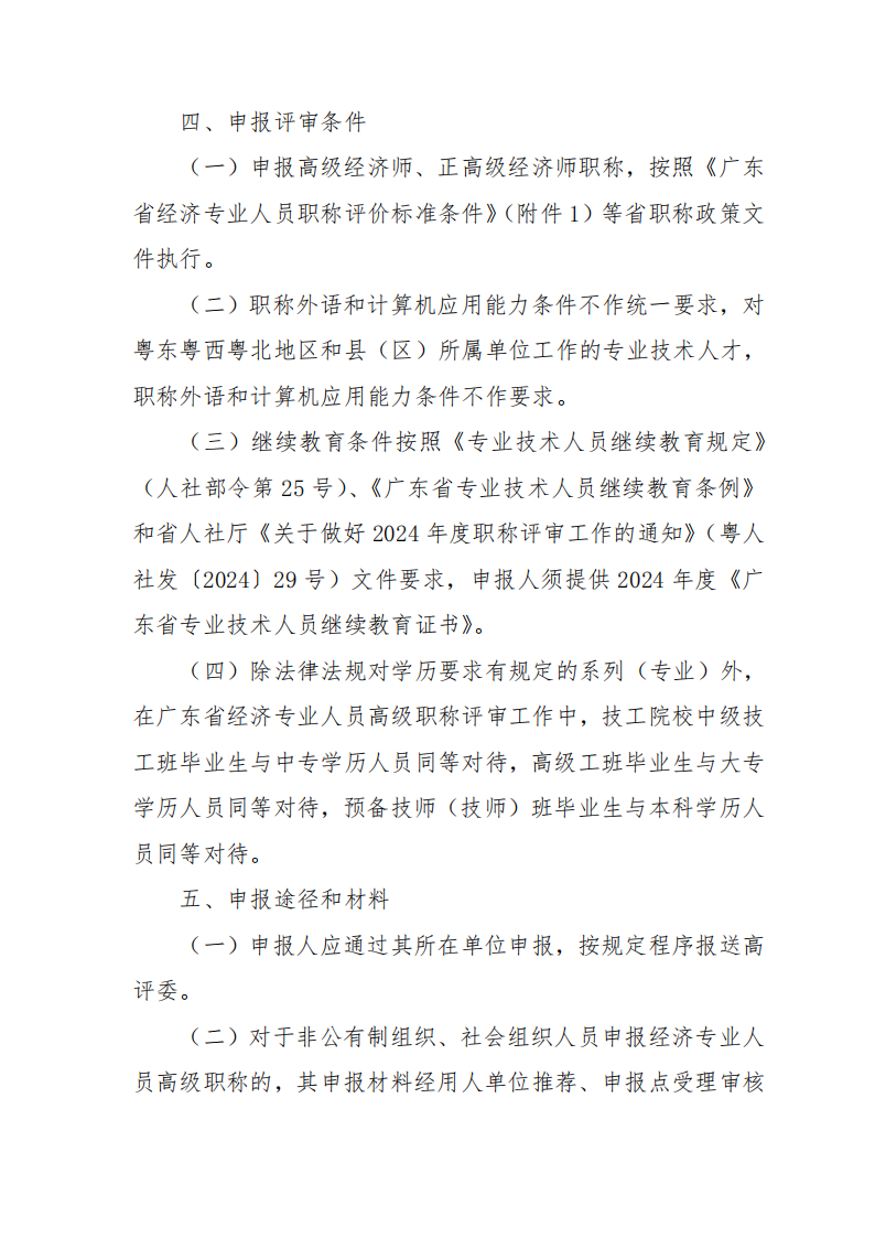 关于开展2024年度广东省经济专业人员高级职称评审工作的通知
